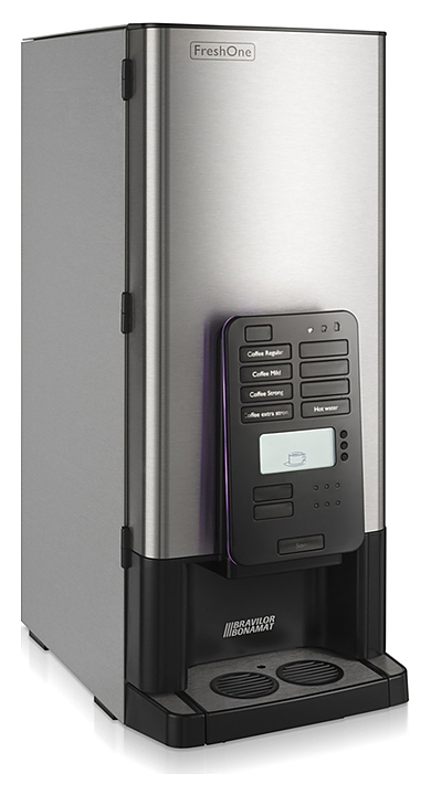 Автоматическая кофемашина Bravilor Bonamat FreshOne используется на предприятиях общественного питания и торговли для приготовления кофе и горячей воды, предназначенной для супа, каши, чая и других горячих напитков. Модель оснащена цифровым дисплеем, с помощью которого можно выбрать предварительно установленные программы, отдельным краном горячей воды, индикаторами заполнения мусора и удаления накипи и раздвижным поддоном для капель. Корпус выполнен из нержавеющей стали. Особенности: