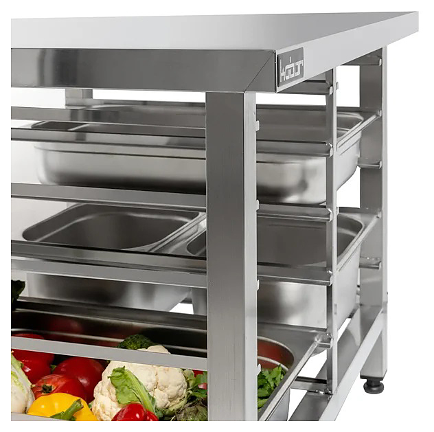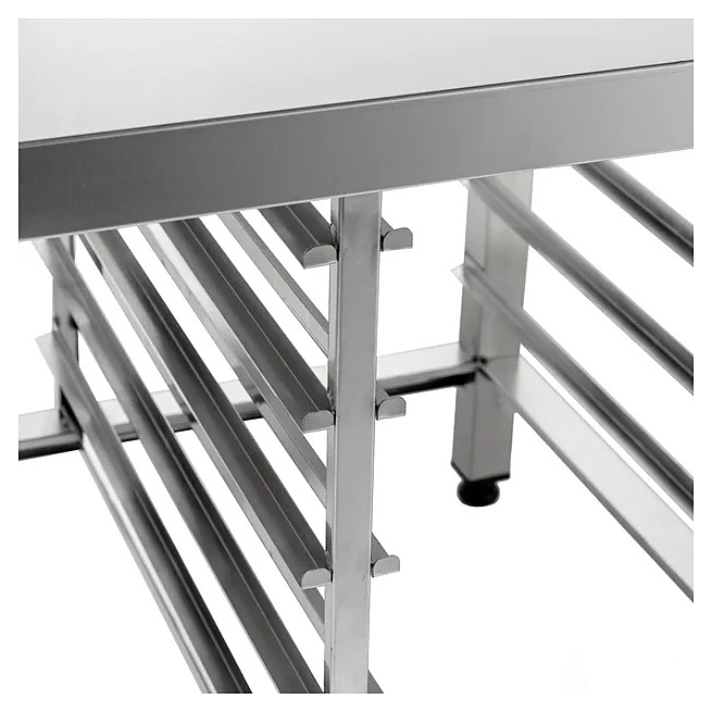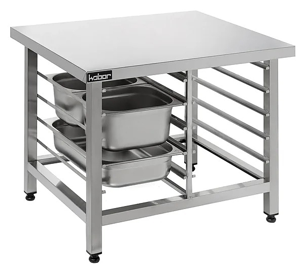 Подставка Кобор ПП-52/70 предназначена для совместного использования с пароконвектоматами Giorik KH/KP на предприятиях общественного питания и торговли. Модель оснащена 7 уровнями направляющих под гастроемкости GN 1/1. Столешница выполнена из нержавеющей стали aisi 430 с усилением ЛДСП, каркас из нержавеющей квадратной трубы 40х40 мм. Гастроемкости в комплект поставки не входят и приобретаются отдельно.