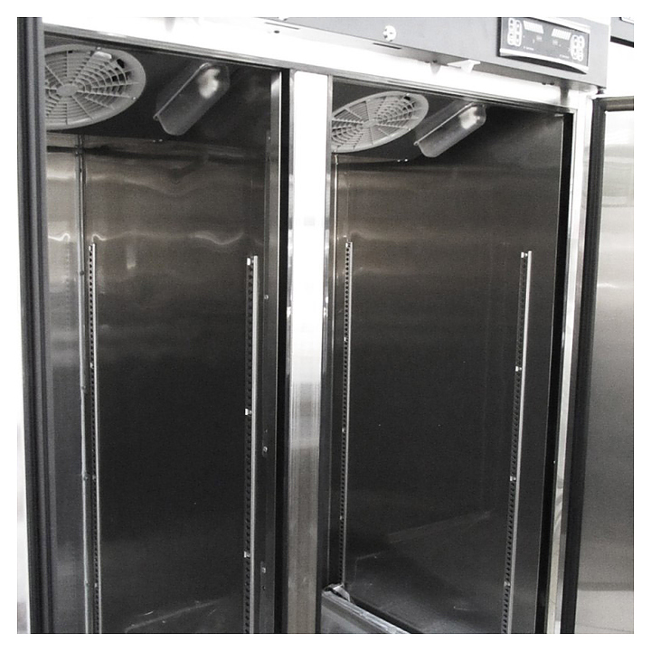 Комбинированный шкаф Turbo air KRF45-2H предназначен для заморозки, охлаждения и хранения скоропортящихся продуктов, полуфабрикатов, мороженого и напитков на предприятиях пищевой промышленности, общественного питания и торговли. Корпус выполнен из нержавеющей стали с применением пожаробезопасных стенок толщиной 60 мм и уплотнения из теплоэффективного АБС-пластика (акрилонитрилбутадиенстирола), не пропускающего конденсата, оборотная сторона и низ - из гальванизированной стали, пол - из нержавеющей стали с алюминиевыми вставками по бокам и сзади, регулируемые полки - из толстой проволоки с виниловым покрытием. Под заказ возможна модицификация данного оборудования для использования на морских судах. Особенности: