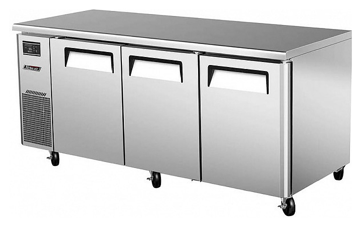 Морозильный стол Turbo air KUF18-3 состоит из рабочей поверхности, на которой можно раскатывать тесто и обрабатывать ингредиенты для приготовления блюд, и камеры, предназначенной для заморозки и хранения продуктов, полуфабрикатов и мороженого на предприятиях пищевой промышленности, общественного питания и торговли. Корпус выполнен из нержавеющей стали с применением пожаробезопасных стенок толщиной 60 мм и уплотнения из теплоэффективного АБС-пластика (акрилонитрилбутадиенстирола), не пропускающего конденсата, оборотная сторона и низ - из гальванизированной стали, пол - из нержавеющей стали с алюминиевыми вставками по бокам и сзади, регулируемые полки - из толстой проволоки с виниловым покрытием, 6 регулируемых ножек - из нержавеющей стали. Под заказ возможна модицификация данного оборудования для использования на морских судах. Особенности:
