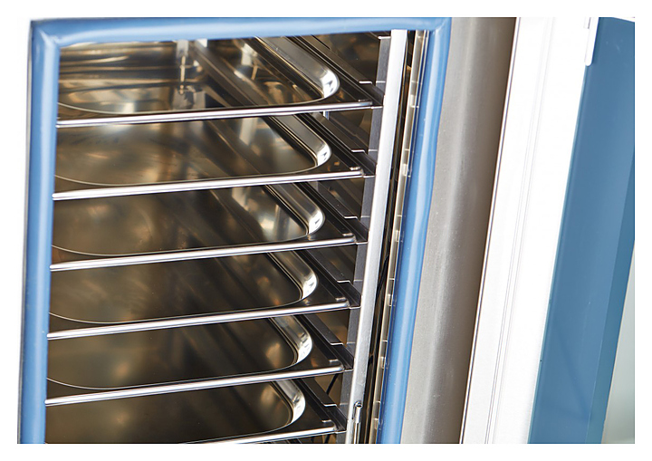 Пароконвектомат Abat ПКА 10-1/1ВМ2 предназначен для обжаривания, приготовления на пару, бланширования, запекания и других видов тепловой обработки продуктов на предприятиях общественного питания и торговли. Оборудование заменяет сразу несколько видов приборов: плиту, конвекционную печь, жарочный шкаф, духовку, опрокидывающуюся сковороду, пищеварочный котел, фритюрницу и др. Приготовленные в пароконвектомате блюда сохраняют все полезные вещества. Модель оснащена подсветкой, легкосъемным жировым фильтром, душем для мойки и дверью с двойным остеклением. Пароконвектомат используется совместно с вытяжным зонтом Abat ЗВВ-800. Корпус и внутренняя отделка выполнены из высококачественной нержавеющей стали. Рекомендуется дополнительно приобрести водоумягчитель и фильтр-систему для очистки и смягчения воды. Подробнее о необходимости водоподготовки читайте здесь. Особенности:
