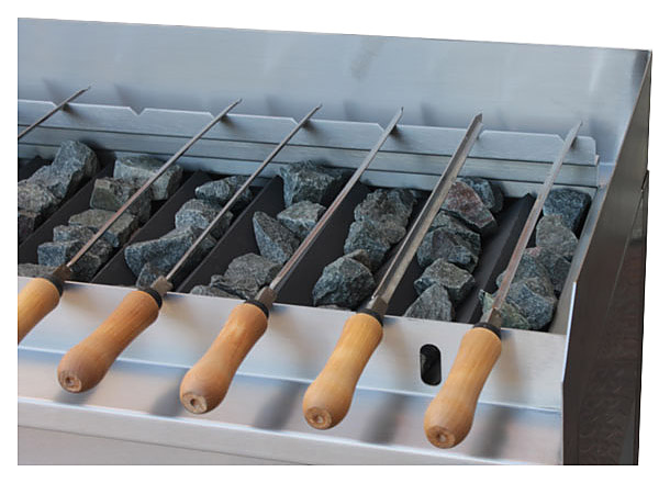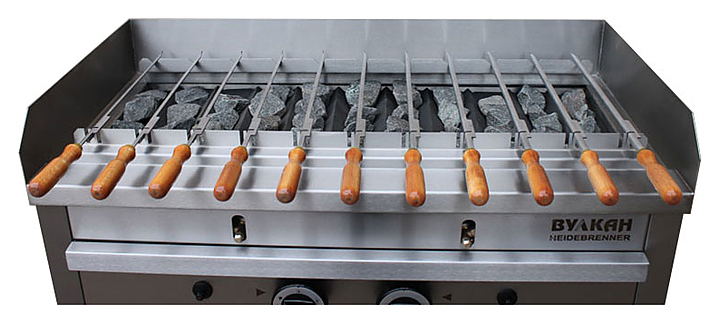 Шашлычница Вулкан BPD 02 "Карадаг" предназначена для жарки различных продуктов предприятиях общественного питания и торговли. Модель оснащена газ-контролем, пьезорозжигом, запальной горелкой и защитный борт от разбрызгивания. В комплект поставки набор из 11-ти шампуров. Характеристики: