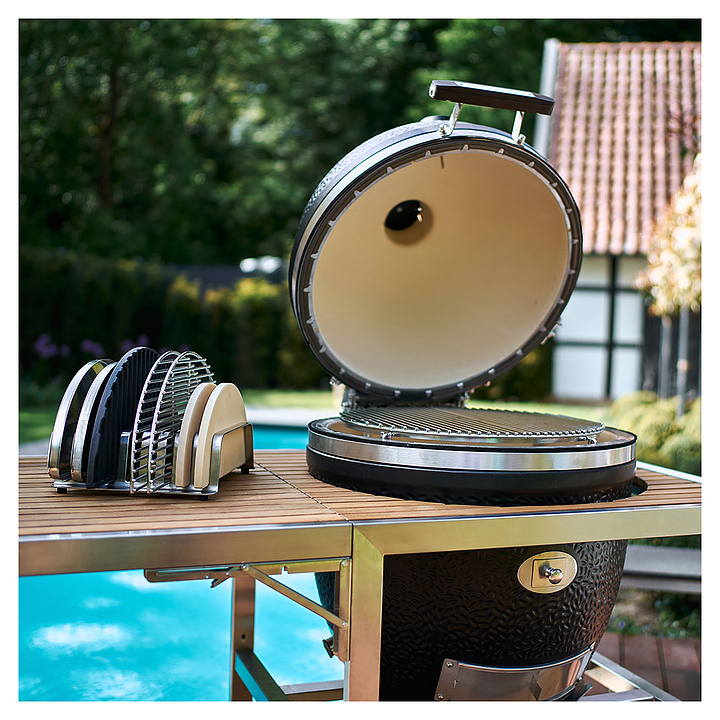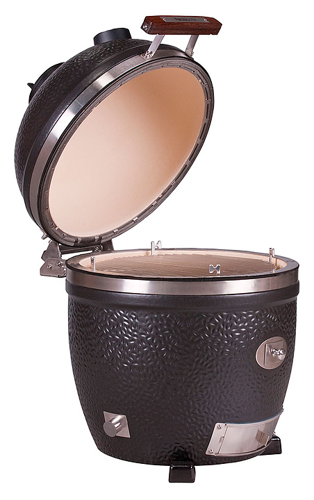 Керамический гриль Monolith Grill Avantgarde.55 Classic 301000-SET2 предназначен для приготовления блюд на древесном угле в частных домах и на предприятиях общественного питания. Модель сочетает в себе 5 видов оборудования для высокотемпературного приготовления пищи: мангал, тандыр, барбекю, гриль и коптильня. Гриль изготовлен из силикатной керамики в сочетании с минеральной глазурью, что обеспечивает непревзойденную теплоизоляцию и устойчивость к ультрафиолетовому излучению, обруч крепления крышки и корпуса изготовлен из 4х миллиметровой стали с сатиново-матовым минеральным покрытием, прочным и абсолютно устойчивым к атмосферным воздействиям. Комплектация: