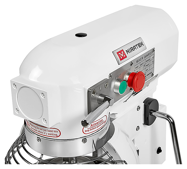 Планетарный миксер Miratek MG-20 предназначен для замеса различного вида теста жидкой консистенции, в том числе белкового, заварного, дрожжевого, бисквитного, а также для приготовления пюре, майонеза, различных соусов, взбитых сливок в пекарнях, кондитерских, на предприятиях общественного питания и торговли. В комплект поставки входят дежа и 3 насадки из нержавеющей стали: крюк, лопатка и венчик. Особенности: