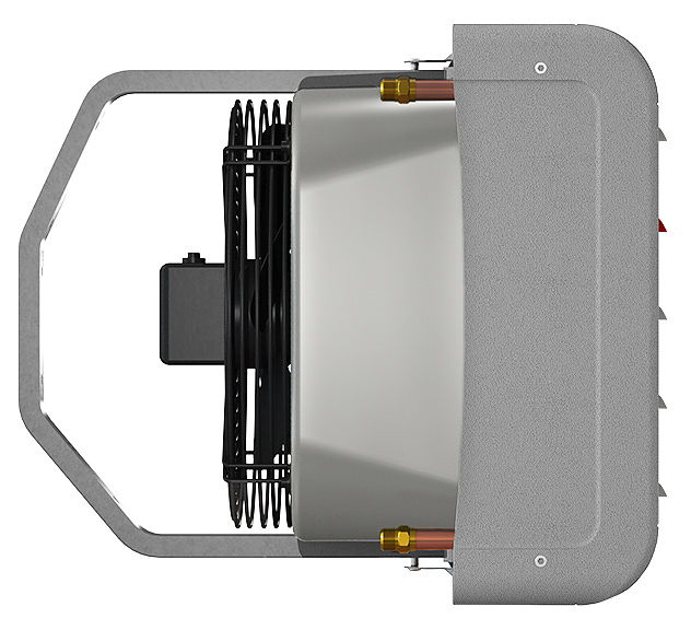 Тепловентилятор Греерс ВС-2125 предназначен для отопления складских и торговых помещений, производственных и спорт-комплексов, подземных паркингов, сельскохозяйственных объектов, теплиц и автомоек. Модель оснащена встроенным трехскоростным двигателем и монтажной консолью. Корпус выполнен из вспененного полипропилена (ЕРР), благодаря чему гарантируется прочность и защита от химических веществ. Благодаря встроенному поддону для сбора конденсата аппараты Греерс могут работать в режиме охлаждения. Для этого можно использовать холодную воду в качестве хладагента. Принцип работы тепловентилятора заключается в прохождении нагнетаемого вентилятором воздуха через теплообменник, в котором циркулирует теплоноситель (вода, незамерзающая жидкость). Особенности: