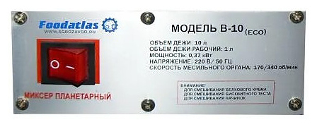 Планетарный миксер Foodatlas B-10 Eco используется на предприятиях общественного питания и торговли для приготовления кремов, теста и соусов. Модель устанавливается на любой устойчивой горизонтальной поверхности. Корпус выполнен из нержавеющей стали. В комлект поставки входят съемная дежа, венчик, лопатка и крюк. Дополнительные характеристики: