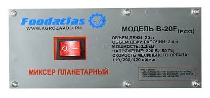 Планетарный миксер Foodatlas B-20F Eco используется на предприятиях общественного питания и торговли для приготовления кремов, теста и соусов. Модель устанавливается на любой устойчивой горизонтальной поверхности. Корпус выполнен из нержавеющей стали. В комлект поставки входят съемная дежа, венчик, лопатка и крюк. Дополнительные характеристики:
