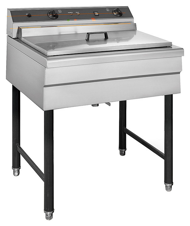 Фритюрница Kocateq EF521 предназначена для приготовления различных продуктов в большом количестве масла или жира на предприятиях общественного питания и торговли. Модель оснащена механической панелью управления, термостатом для регулировки температуры и защитным термостатом, автоматически отключающим напряжение при повреждении основного термостата. Ванна и корпус выполнены из нержавеющей стали AISI 304. В комплект поставки входит корзина размером 300x560x170 мм. Особенности: