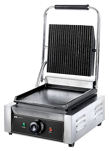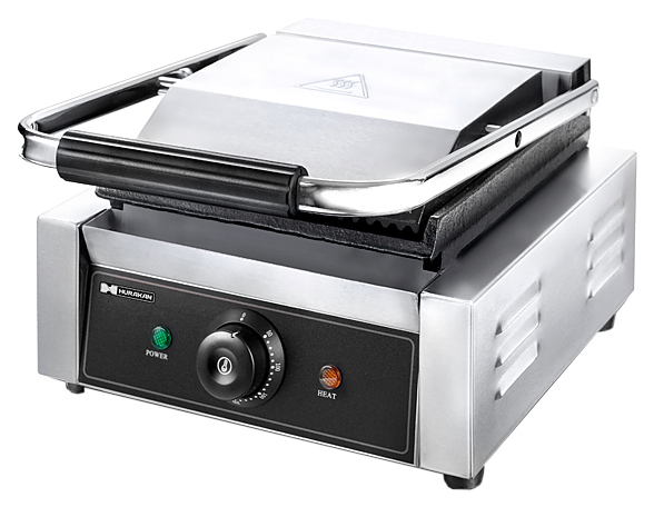 Прижимной гриль Hurakan HKN-FR66L предназначен для обжаривания стейков и сосисок, приготовления сэндвичей, полуфабрикатов, подогрева булочек, гамбургеров, хот-догов на предприятиях общественного питания и торговли. Высокая скорость приготовления достигается благодаря встроенным в обе части аппарата тепловым элементам, которые плотно прилегают к продукту. Модель оснащена регулируемым термостатом, индикатором нагрева и лотком для сбора жира. Корпус выполнен из нержавеющей стали. Видео