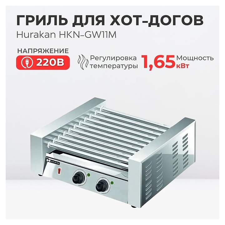Роликовый гриль Hurakan HKN-GW11M предназначен для обжаривания сосисок и сарделек, мясных и рыбных рулетов на предприятиях общественного питания и торговли. Модель оснащена регулируемыми термостатами и индикаторами нагрева. Корпус и ролики выполнены из нержавеющей стали. Видео