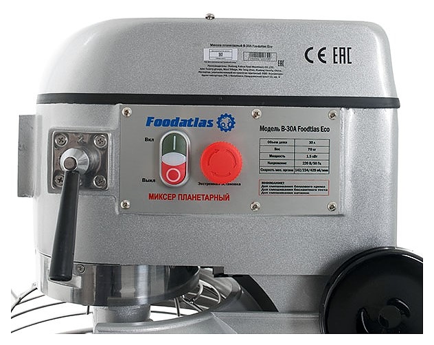 Планетарный миксер Foodatlas B-30A Eco используется на предприятиях общественного питания и торговли для приготовления кремов, теста и соусов. Модель устанавливается на любой устойчивой горизонтальной поверхности. Корпус выполнен из нержавеющей стали. В комлект поставки входят съемная дежа, венчик, лопатка, крюк и защитная решетка над дежой. Дополнительные характеристики: