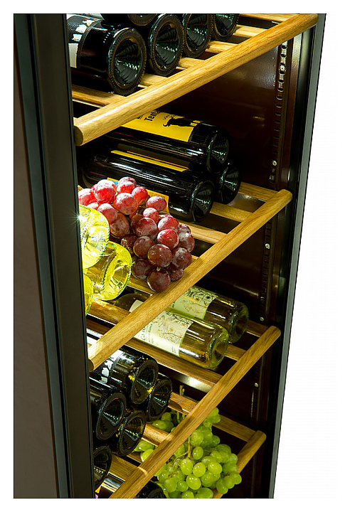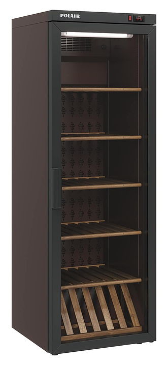 Винный шкаф POLAIR DW104-Bravo предназначен для демонстрации, хранения и создания оптимальных условий для сохранения всех вкусовых свойств разливного вина на предприятиях общественного питания, торговли, в барах, ресторанах, специализированных магазинах, частных домах или квартирах. Модель оснащена 5 навесными полками и наклонной базовой полкой для шампанского. Внешняя и внутренняя обшивка корпуса выполнена из окрашенной оцинкованной стали, полки - из дуба, дверца - из тонированного стекла с ИК и УФ защитой с рамой из алюминия черного цвета. Оборудование рассчитано на работу при температуре окружающей среды до 32 °С и относительной влажности воздуха до 60%. Особенности: