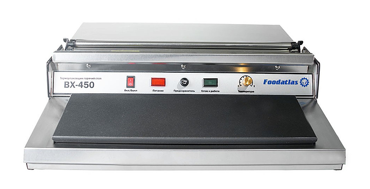 Термоупаковщик горячий стол Foodatlas BX-450 Pro используется на предприятиях общественного питания и торговли для упаковки продуктов питания, напитков, медицинских препаратов, металлоизделий, косметики, книг, предметов искусства и другой продукции. Характеристики:
