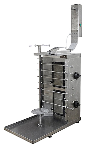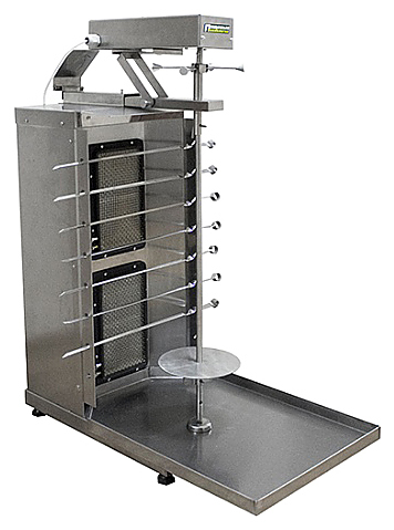 Газовая шашлычница Пищевые Технологии ШШГ-2-2-М используется на предприятиях общественного питания и торговли для приготовления шашлыков из свинины, баранины и курицы, а также мясной начинки для шаурмы. Модель оснащена мотором, 2 газовыми горелками с газ-контролем, вертелом для шаурмы и 8 шампурами. Корпус выполнен из нержавеющей стали. Характеристики: