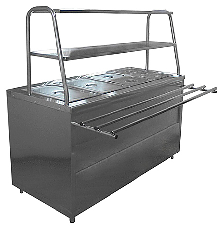 Мармит Пищевые Технологии Лира-Профи МЭП-2Б/ЛП-1500 предназначен для кратковременного сохранения в горячем состоянии вторых блюд, соусов и гарниров в составе линий раздач или самостоятельно на предприятиях общественного питания и торговли. Модель оснащена встроенной прямоугольной ванной с электронагревательными элементами и гнездами для установки гастроемкостей, 2 полками для тарелок, направляющими для подносов и регулируемыми по высоте ножками. Корпус выполнен из нержавеющей стали. В комплект поставки входят 7 гастроемкостей глубиной 150 мм с крышками (2х GN 1/1, 2х GN 1/2, 3х GN 1/3) и 3 перегородки. Особенности: