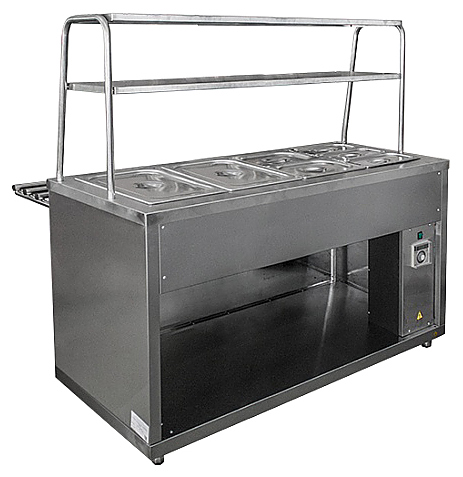 Мармит Пищевые Технологии Лира-Профи МЭП-2Б-П/ЛП-1500 предназначен для кратковременного сохранения в горячем состоянии вторых блюд, соусов и гарниров в составе линий раздач или самостоятельно на предприятиях общественного питания и торговли. Модель оснащена прямоугольной ванной с гнездами для установки гастроемкостей, 2 полками для тарелок, направляющими для подносов и регулируемыми по высоте ножками. Корпус выполнен из нержавеющей стали. В комплект поставки входят 7 гастроемкостей глубиной 150 мм с крышками (2х GN 1/1, 2х GN 1/2, 3х GN 1/3) и 3 перегородки. Особенности: