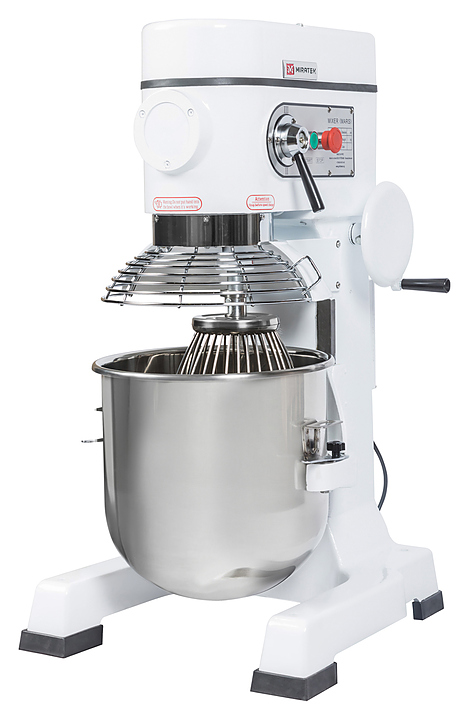 Планетарный миксер Miratek MGR-30 предназначен для взбивания и перемешивания масс негустой консистенции: мягкого теста, кремовых масс (яичных, сливочных), белковых масс, суфле, муссов, различных начинок и многого другого на предприятиях общественного питания и торговли. Корпус выполнен из чугуна и покрыт порошковой эмалью, дежа и месильные органы - из нержавеющей стали AISI 304. В комплект поставки входят дежа и 3 месильных органа: крюк, лопатка и венчик. Особенности: