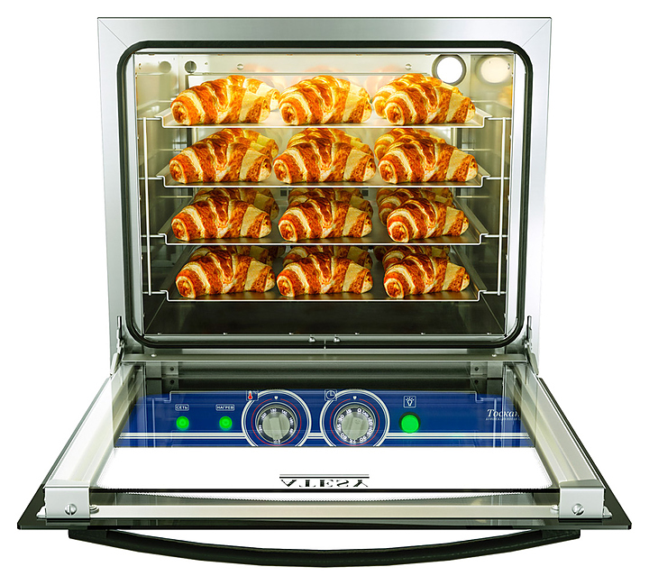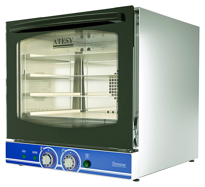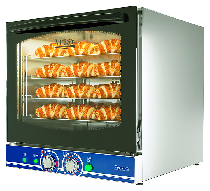 Конвекционная печь ATESY КП-4-430/330-01 серии Тоскана предназначена для выпечки хлебобулочных и кондитерских изделий, приготовления и разогрева различных блюд на предприятиях общественного питания и торговли. Приготовление и выпекание происходит за счет равномерной циркуляции горячего воздуха внутри камеры. Корпус и камера выполнены из нержавеющей стали, дверца - из термостойкого стекла. В комплект поставки входят 4 листа для выпечки. Особенности: