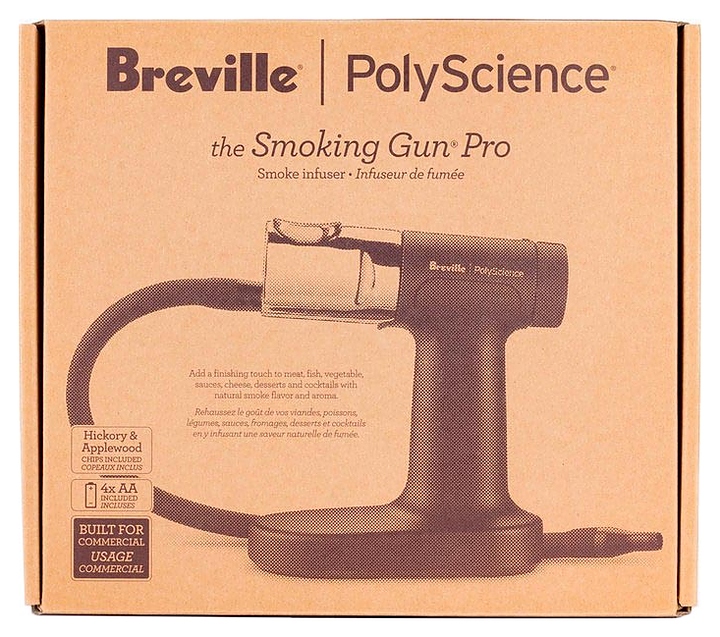 Коптильный пистолет PolyScience Smoking Gun Pro предназначен для окуривания холодным и ароматным дымом мяса, морепродуктов, салатов, овощей, закусок, десертов, маринадов, соусов, супов, коктейлей и других продуктов и напитков любой плотности и консистенции на предприятиях общественного питания и торговли, а также в домашних условиях. Разнообразные ароматические дымы придают особый шарм любому блюду, который по достоинству оценит каждый гурман. Главное преимущество использования устройства - это возможность употребления в пищу "подкопченых" с его помощью ароматных продуктов даже теми людьми, которые не могут употреблять натуральные копчености и придерживаются диетического питания. Комплектация: