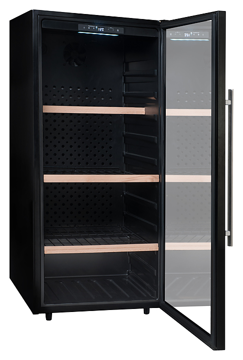 Винный шкаф Climadiff PCLV160 предназначен для хранения вина при определенном уровне влажности и температуры в ресторанах, специализированных магазинах, отелях, подсобных складских помещениях, в частных домах или квартирах. Модель оснащена цифровым дисплеем без возможности выбора температуры и принудительной вентиляцией. Корпус выполнен из металла, внутренняя облицовка - из ПВХ. Особенности: