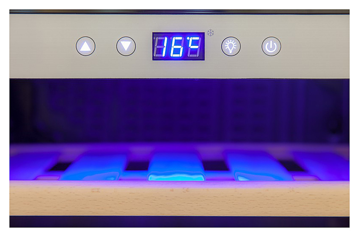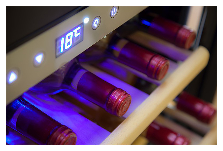 Винный шкаф Cold Vine C18-KSB1 создает оптимальные условия для сохранения всех вкусовых свойств разливного вина. Модель оснащена встроенным вентилятором, 3 деревянными полками, 2 из которых на метабоксах и голубой светодиодной подсветкой. Корпус выполнен из окрашенной в черный цвет стали, дверь со стальной рамой - из тонированного стеклопакета с защитой от УФ-излучения. Особенности: