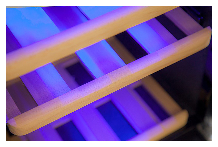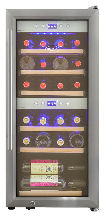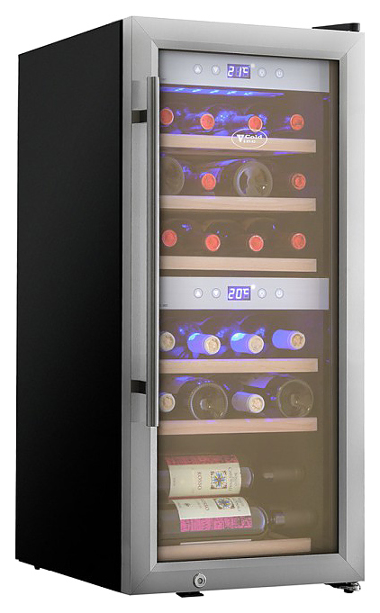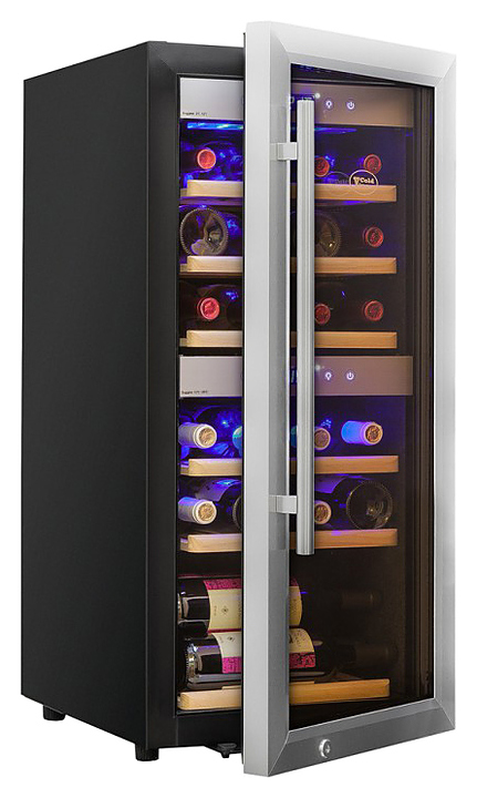 Винный шкаф Cold Vine C24-KSF2 создает оптимальные условия для сохранения всех вкусовых свойств разливного вина. Модель оснащена встроенным вентилятором, 6 деревянными полками, 5 из которых на метабоксах и голубой светодиодной подсветкой. Корпус выполнен из окрашенной в черный цвет стали, дверь со стальной рамой - из тонированного стеклопакета с защитой от УФ-излучения. Особенности: