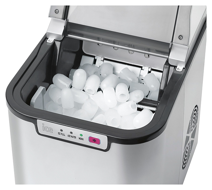 Льдогенератор Bomann GT 358 используется в квартирах, частных домах, барах, отелях, ресторанах и кафе для приготовления пальчикового льда, который применяется для охлаждения различных напитков и емкостей с жидкостями. Модель оснащена электромеханическим управлением и 3 световыми индикаторами, сообщающими о процессе приготовления льда, наполнении контейнера и отсутствии воды в резервуаре. Льдогенератор имеет cтильный современный дизайн, удобен и прост в использовании. Особенности: