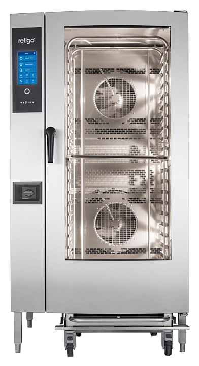 Пароконвектомат Retigo B2011IG VISION II серии Blue Vision II предназначен для обжаривания, приготовления на пару, бланширования, запекания и других видов тепловой обработки продуктов на фабриках-кухнях, предприятиях общественного питания и торговли. Оборудование заменяет сразу несколько видов приборов: плиту, конвекционную печь, жарочный шкаф, духовку, опрокидывающуюся сковороду, пищеварочный котел и фритюрницу. Приготовленные в пароконвектомате блюда сохраняют все полезные вещества. Модель оснащена сенсорной панелью управления и цифровым дисплеем. Комплектация: