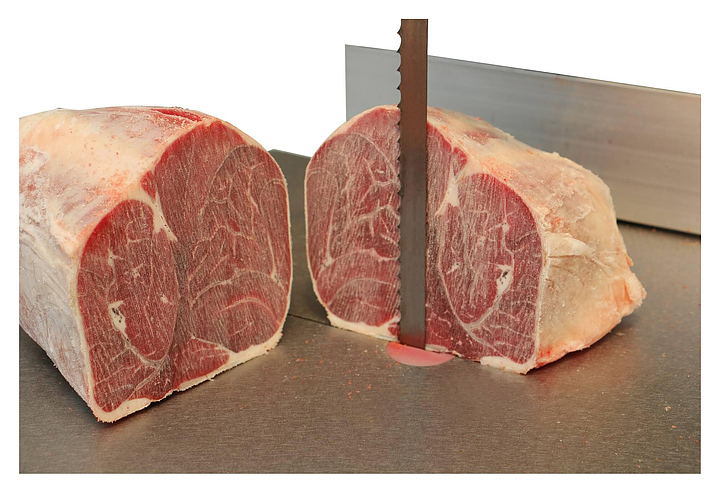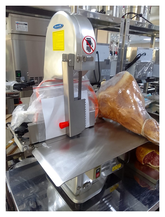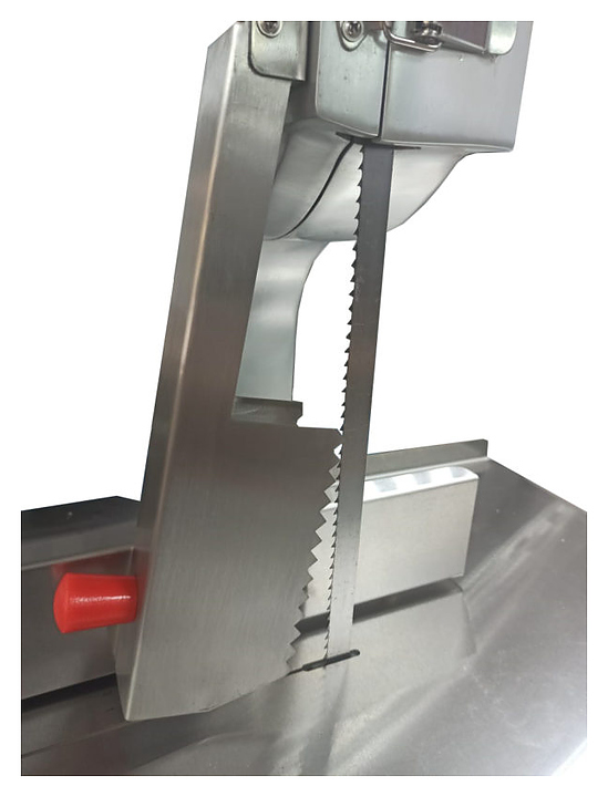 Пила для мяса Assum JG210A предназначена для нарезки на куски свежих и замороженных мясных продуктов, рыбы и курицы. Корпус выполнен из нержавеющей стали. В комплект поставки входят 2 полотна. Дополнительные характеристики: