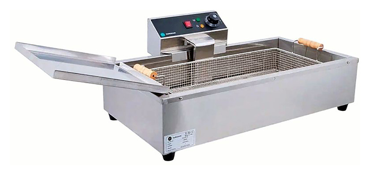 Чебуречница Hurakan HKN-EF16 предназначена для приготовления чебуреков, пирожков, беляшей и других блюд в разогретом масле на предприятиях общественного питания и торговли. Модель оснащена Модель оснащена чашей с отметкой для уровня масла, тэном и регулировкой температуры. Корпус выполнен из нержавеющей стали. В комплект поставки входят корзина с ручками. Внимание! Вилка в комплект поставки не входит и приобретается отдельно. Дополнительные характеристики: