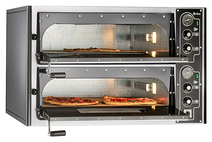 Печь для пиццы Abat ПЭП-4х2 используется на предприятиях общественного питания и торговли для выпечки пиццы и хлебобулочных изделий. Модель оснащена термометрами для отображения действительной температуры печи. Облицовка выполнена из нержавеющей стали AISI 304, боковые и задняя стенки - покрыты порошковой краской, внутренняя поверхность - из эмалированного металла, жарочный шкаф - из оцинкованного листа толщиной 1,5 мм, ТЭНы - из нержавеющей стали. Особенности: