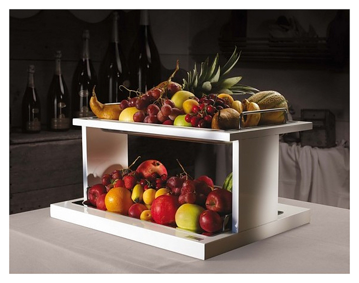 Сервировочный поднос Pintinox 50952552 используется на предприятиях общественного питания и торговли, в барах, ресторанах и кафе для выкладки фруктов, овощей, хлебобулочных и кондитерских изделий. Основание выполнено из древесины. Дополнительные характеристики:
