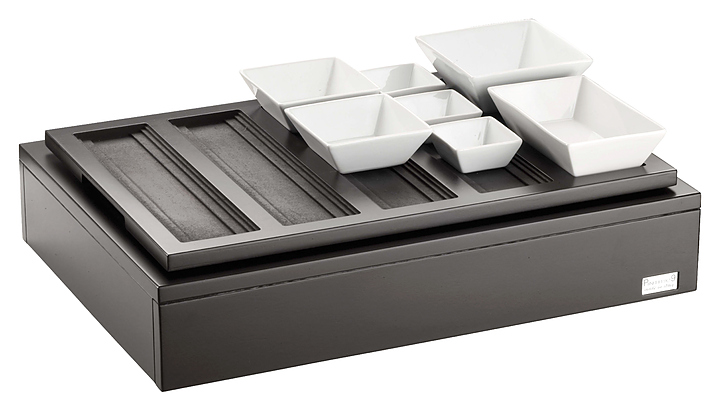 Сервировочный поднос Pintinox 51132700 используется на предприятиях общественного питания и торговли, в барах, ресторанах и кафе для выкладки различных блюд в салатниках. Подставка выполнена из древесины. Салатники в комплект поставки не входят и приобретаются отдельно. Дополнительные характеристики: