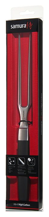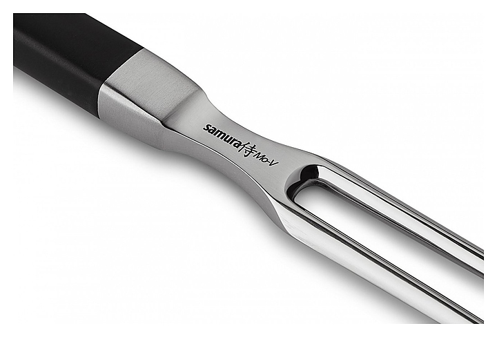 Вилка для мяса Samura Mo-V SM-0065/16 предназначена для раскладывания уже нарезанных порционных кусков мяса, птицы или рыбы по индивидуальным тарелкам на предприятиях общественного питания и торговли, в частных домах и квартирах. Раздаточная вилка обеспечивает надежную фиксацию, гигиену при работе с едой и позволяет избегать ожогов. Лезвие выполнено из коррозионно-стойкой однослойной стали AUS-8, ручка - из ABS-пластика. Особенности: