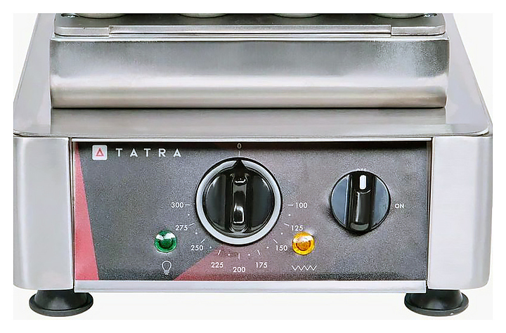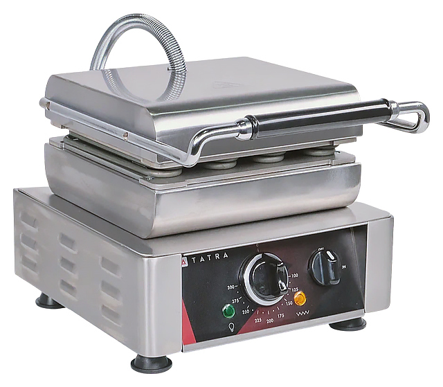 Вафельница Tatra​ TWI 1 предназначена для выпечки вафель различной формы на предприятиях общественного питания и торговли. Модель оснащена электромеханической панелью управления с терморегулятором, 1 зоной выпечки и индикаторами питания и нагрева. Корпус выполнен из нержавеющей стали.