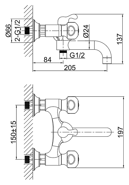 • Расстояние между отверстиями для установки: 150 мм