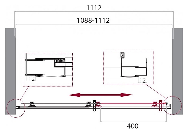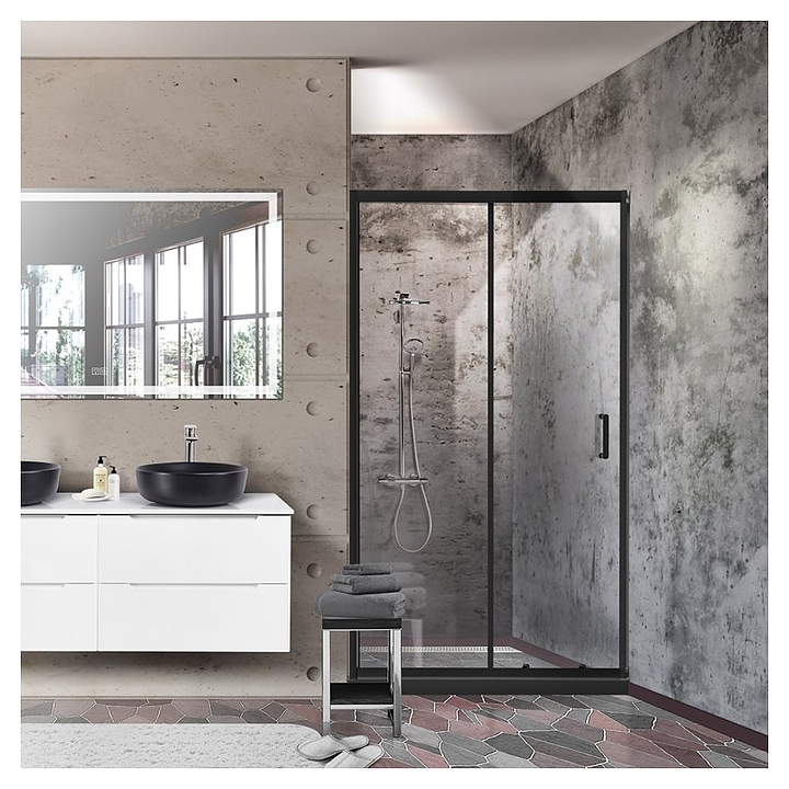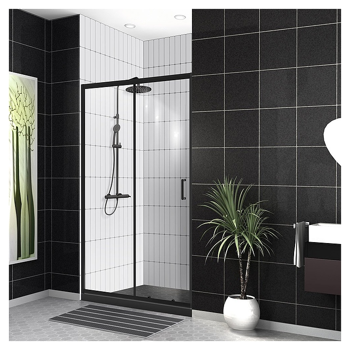 Дверь душевая BelBagno UNO-195-BF-1-110-C-NERO 110х195 см, в нишу, раздвижная, стекло прозрачное
