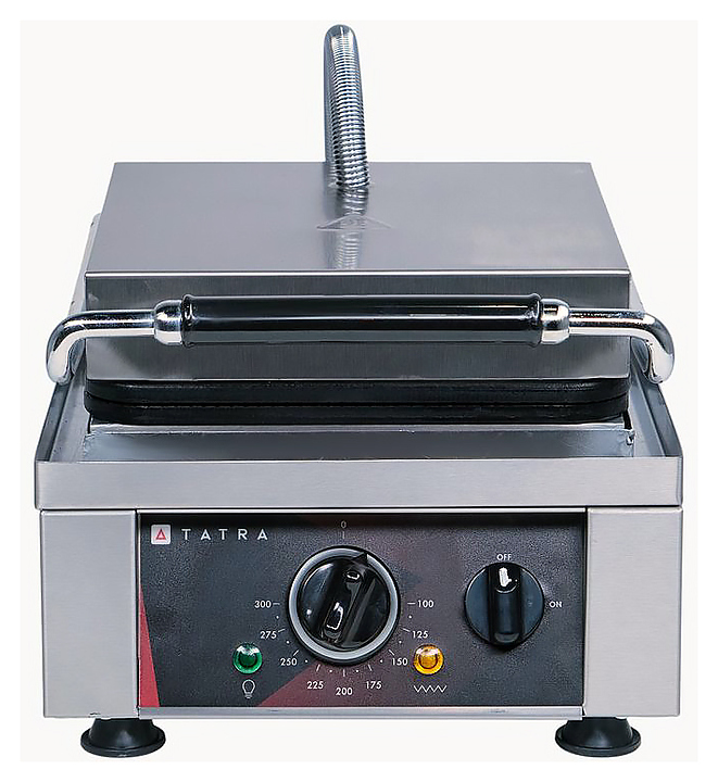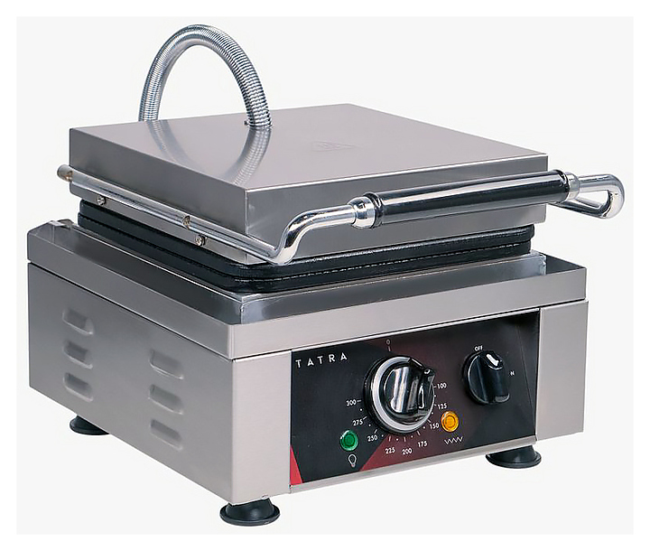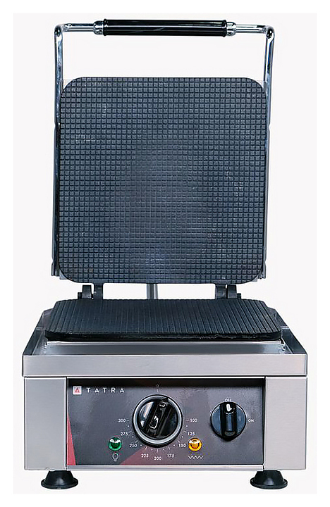 Вафельница Tatra TWI 1 GELATO предназначена для выпечки вафель для мороженого на предприятиях общественного питания и торговли. Модель оснащена электромеханической панелью управления с терморегулятором, 1 зоной выпечки, емкостью для сбора жира и индикаторами питания и нагрева. Корпус выполнен из нержавеющей стали, несъемные рабочие поверхности - из чугуна. Дополнительные характеристики: