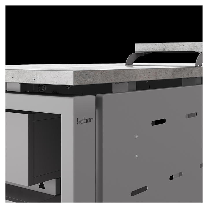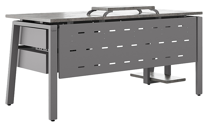 Компьютерный стол Кобор КAB-180/70 aluminum/chicago используется в офисных помещениях и кабинетах руководителей. Модель оснащена A-образными опорами со скошенными фронтальными сегментами. Каркас выполнен из металла, выкрашенного в цвет алюминиевый металлик (RAL9006), столешница – из ламинированной древесно-стружечной плиты (ЛДСП) цвета бетон чикаго (F186 ST9). Опции (заказываются отдельно):