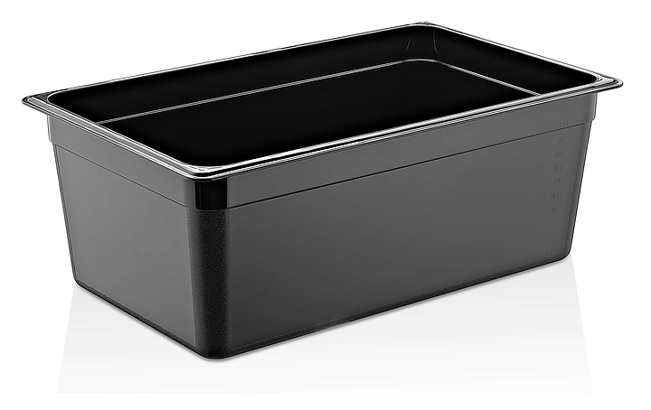 Гастроемкость Gastroplast 76751 GN 1/1-200 используется для профессионального использования совместно с крышкой на предприятиях общественного питания и торговли, в ресторанах, кафе, барах, гастрономах и супермаркетах для приготовления широкого спектра блюд, демонстрации, охлаждения, замораживания, хранения и транспортировки готовых блюд и пищевых продуктов. Модель прямоугольного сечения оснащена выступающей кромкой. Изделие выполнено из черного полипропилена без содержания токсичного бисфенола A (BPA FREE). *Крышка в комплект не входит. Особенности: