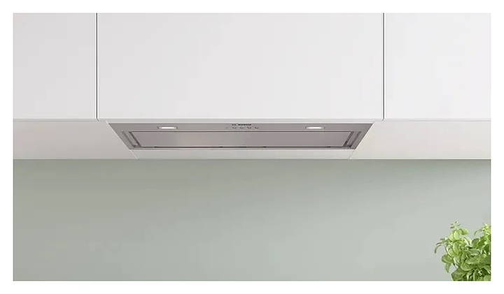 Встраиваемая кухонная вытяжка Bosch DLN77AC50 серии 6 предназначена для очистки воздуха от продуктов горения, копоти и запахов в процессе приготовления пищи путем принудительной вентиляции в домашних условиях. Модель оснащена вентилятором с электродвигателем, кабелем питания, 2 прямоугольными светильниками и электронной панелью управления с нажимными функциональными клавишами. Короб и фасад выполнены из высококачественной нержавеющей стали, фасадная панель и откидная крышка фильтра прямоугольной формы с сатинированной серебристой поверхностью, жироулавливающий фильтр – из нержавеющей стали, фурнитура с серебристой поверхностью. Комплектация: