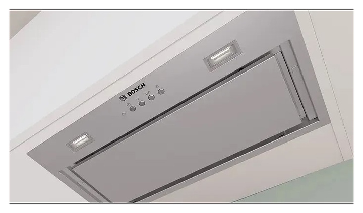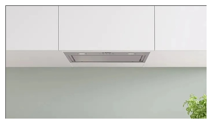 Встраиваемая кухонная вытяжка Bosch DLN56AC50 серии 6 предназначена для очистки воздуха от продуктов горения, копоти и запахов в процессе приготовления пищи путем принудительной вентиляции в домашних условиях. Модель оснащена вентилятором с электродвигателем, кабелем питания, 2 прямоугольными светильниками и электронной панелью управления с нажимными функциональными клавишами. Короб и фасад выполнены из высококачественной нержавеющей стали, фасадная панель и откидная крышка фильтра прямоугольной формы с сатинированной серебристой поверхностью, жироулавливающий фильтр – из нержавеющей стали, фурнитура с серебристой поверхностью. Комплектация: