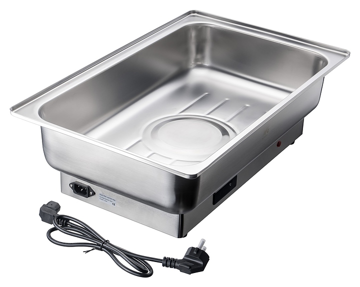 Электрический мармит MGSteel 79438 предназначен для подогрева и поддержания в горячем состоянии готовых блюд на предприятиях общественного питания и торговли. Модель прямоугольного сечения оснащена блоком управления управления с цифровым дисплеем индикаци и гастронормированной ванной с выступающей кромкой с невысокими бортиками. Корпус и ванна выполнены из высококачественной нержавеющей стали с серебристой поверхностью. Особенности: