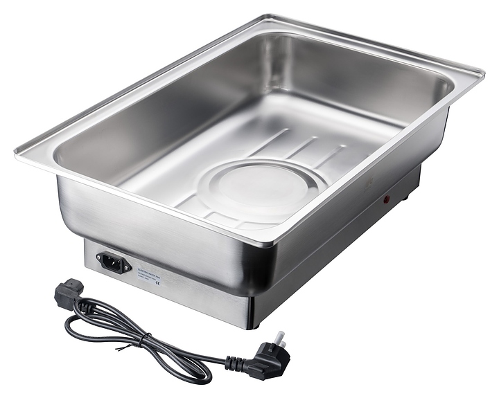 Электрический мармит MGSteel 79437 предназначен для подогрева и поддержания в горячем состоянии готовых блюд на предприятиях общественного питания и торговли. Модель прямоугольного сечения оснащена блоком управления управления и гастронормированной ванной с выступающей кромкой с невысокими бортиками. Корпус и ванна выполнены из высококачественной нержавеющей стали с серебристой поверхностью. Особенности: