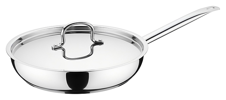 Крышка MGSteel 79199 используется совместно с наплитной посудой подходящего диаметра для приготовления широкого спектра блюд на любых типах варочных поверхностей, включая индукционные, на предприятиях общественного питания и торговли, а также в домашних условиях. Модель оснащена слегка выпуклой поверхностью, заглубленной относительно кромки для надежной фиксации на ободке совместимой емкости, и дугообразной рукояткой. Изделие выполнено из высококачественной нержавеющей стали с серебристой поверхностью. Дополнительные характеристики: