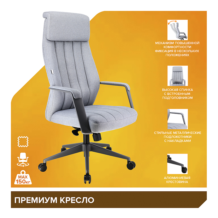 Кресло Everprof Shanghai предназначено для меблировки офисов и современных домашних кабинетов. Модель оснащена встроенным подголовником, поясничной поддержкой и подлокотниками с мягкими накладками. Мультиблок с синхроплатой позволяет настраивать наклон спинки и фиксировать положение в нескольких точках, что обеспечивает плавное покачивание и устойчивость. Ролики для паркета обеспечивают надежность и защиту напольного покрытия. Крестовина выполнена из алюминия, подлокотники - из металла, обивка и накладки подлокотников - из ткани, набивка - из вспененного полиуретана. Особенности: