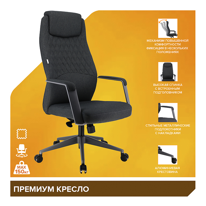 Кресло Everprof Singapure предназначено для меблировки офисов и современных домашних кабинетов. Модель оснащена встроенным подголовником, поясничной поддержкой и подлокотниками с мягкими накладками. Мультиблок с синхроплатой позволяет настраивать наклон спинки и фиксировать положение в нескольких точках. Ролики для паркета обеспечивают надежность и защиту напольного покрытия. Крестовина выполнена из алюминия, подлокотники - из металла, обивка и накладки подлокотников - из ткани, набивка - из вспененного полиуретана. Особенности: