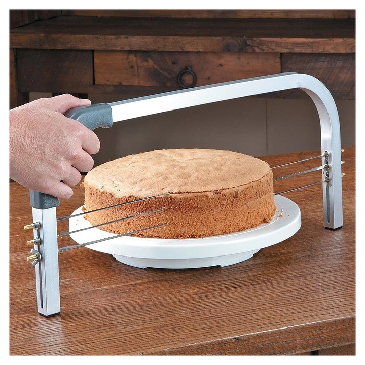 Кондитерский нож-пила Restopit рп320 используется для ровного горизонтального разрезания бисквитных коржей в процессе приготовления тортов на предприятиях общественного питания и в домашних условиях. Модель оснащена дугообразным каркасом, 3 регулируемыми по высоте сменными лезвиями и рукояткой. Каркас выполнен из алюминия, рукоятка – из черного пластика.