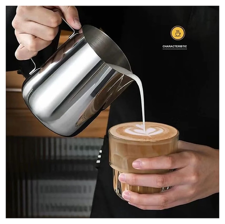 Питчер Restopit рп749 предназначен для подогрева и вспенивания в нем молока в процессе приготовления капучино, латте и других кофейных напитков на предприятиях общественного питания и торговли, а также в домашних условиях. Модель оснащена интегрированным в борт изливом и рукояткой с удобным захватом. Изделие выполнено из нержавеющей стали марки 304 с серебристой поверхностью. Дополнительные характеристики: