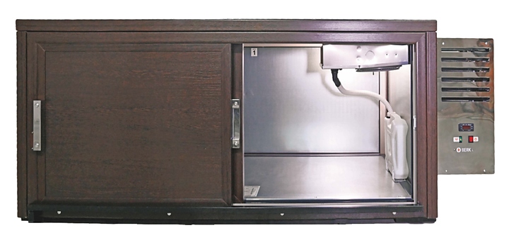 Встраиваемый барный кегератор Berk модель №7 предназначен для хранения и розлива кегов (бочек) с разливным пивом и другими напитками на предприятиях общественного питания и торговли. Модель оснащена холодильным моноблоком с лампой внутреннего освещения. В комплект поставки входит емкость для сбора конденсата с холодильной установки и дренажа с кранов розлива (при розливе пива в ПЭТ-тару). Особенности: